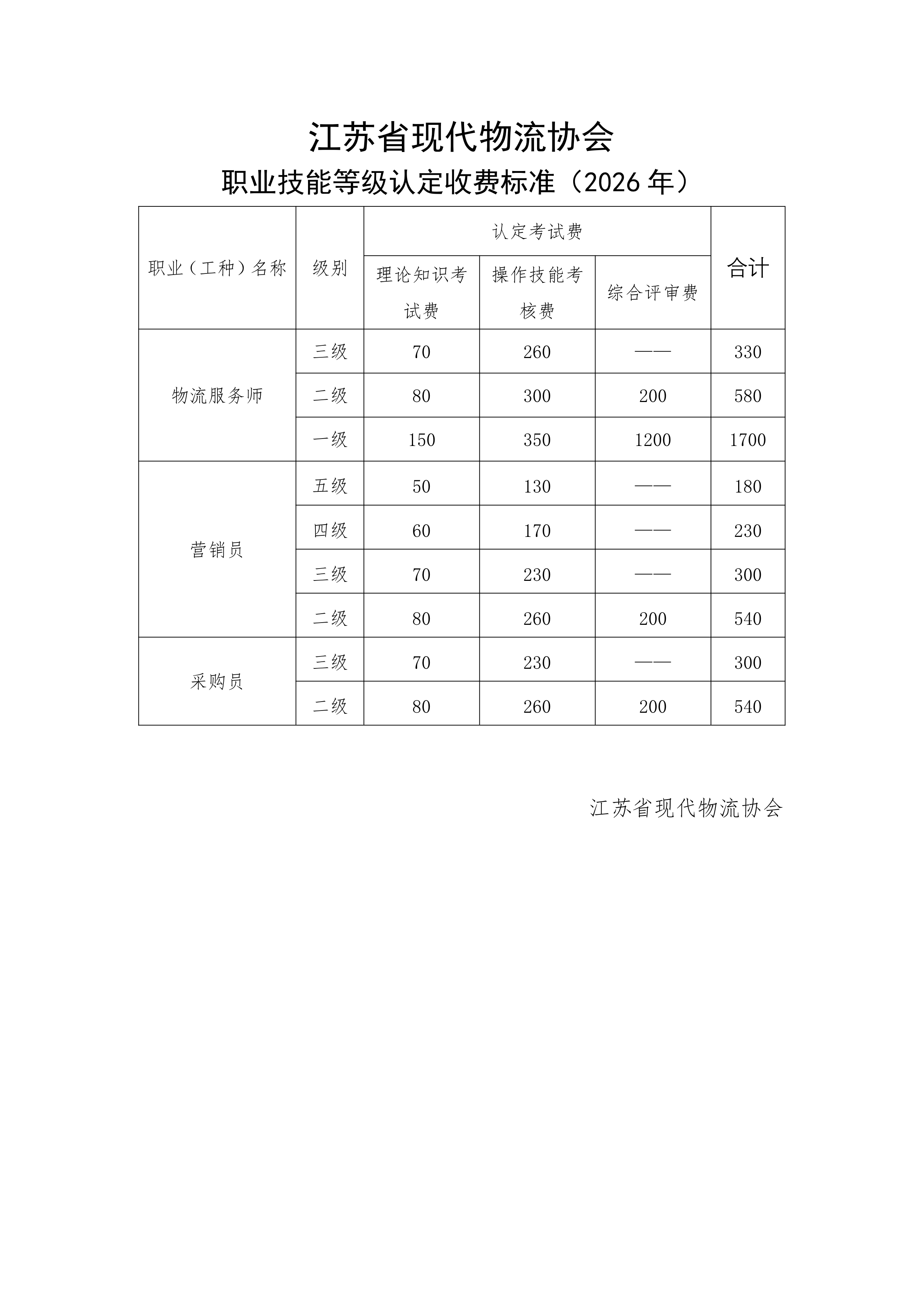 附件9-江苏省现代物流协会职业技能等级认定收费标准