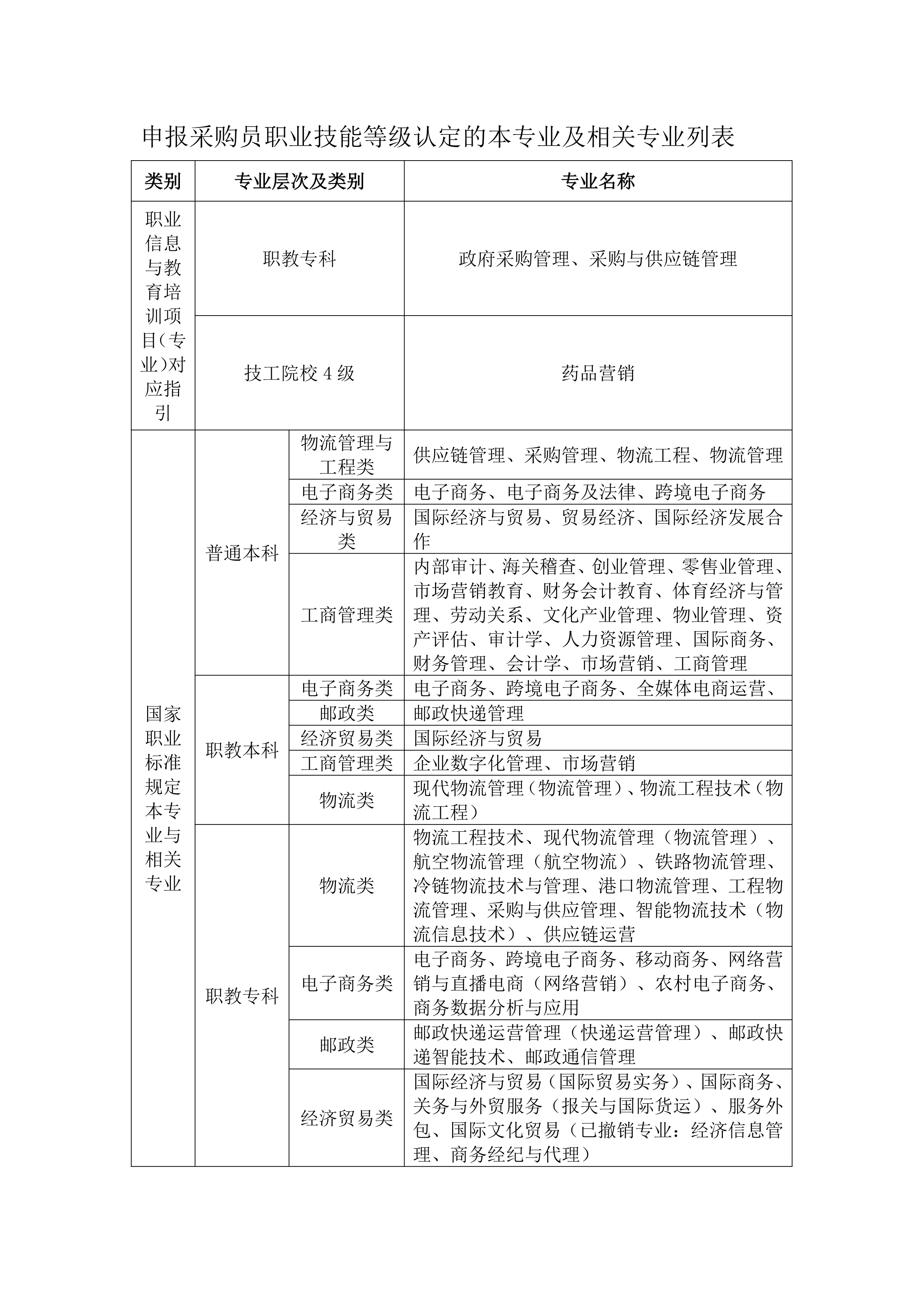 附件6-申报《采购员》职业技能等级认定的本专业及相关专业列表