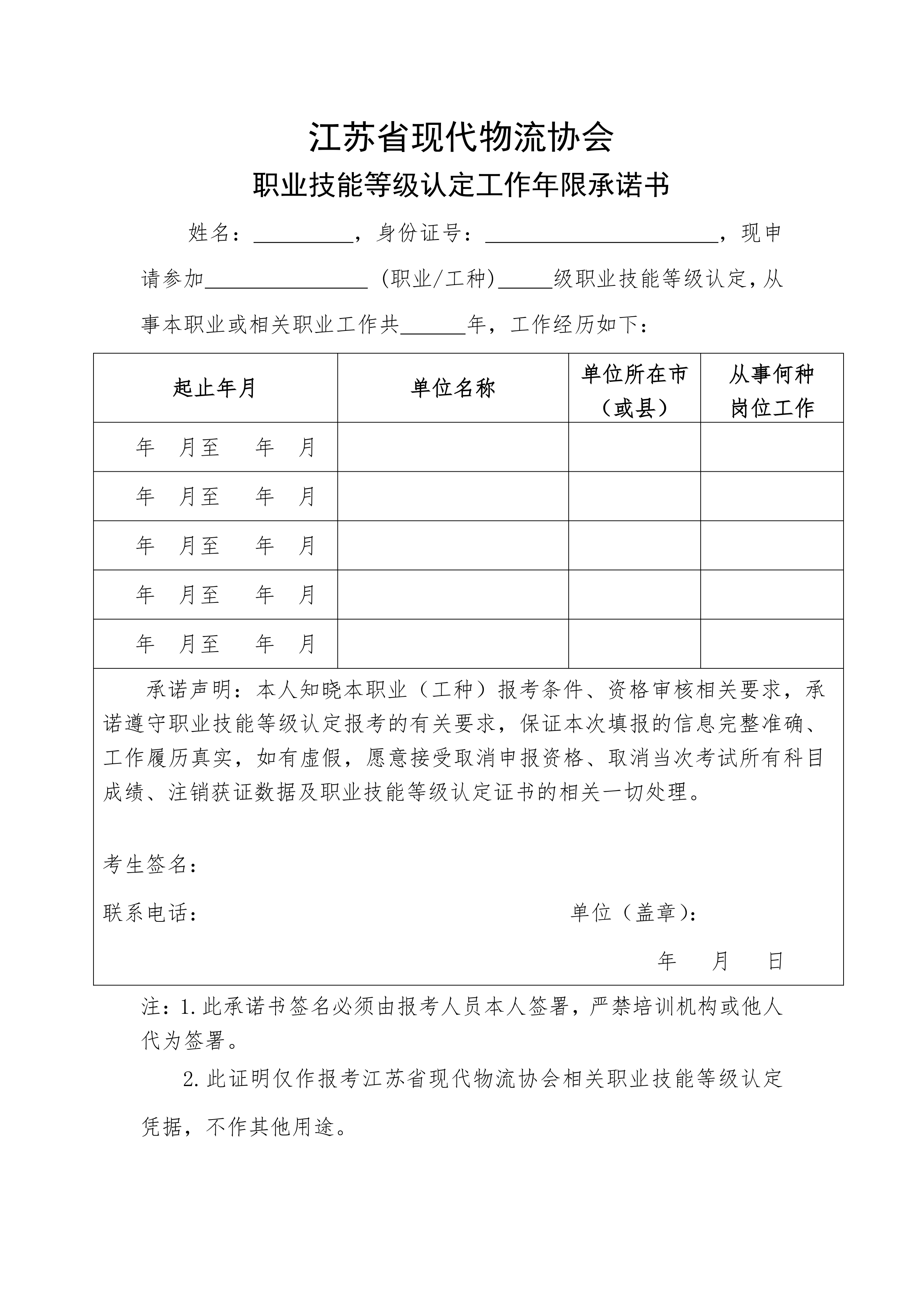 附件8-江苏省现代物流协会职业技能等级认定工作年限承诺书
