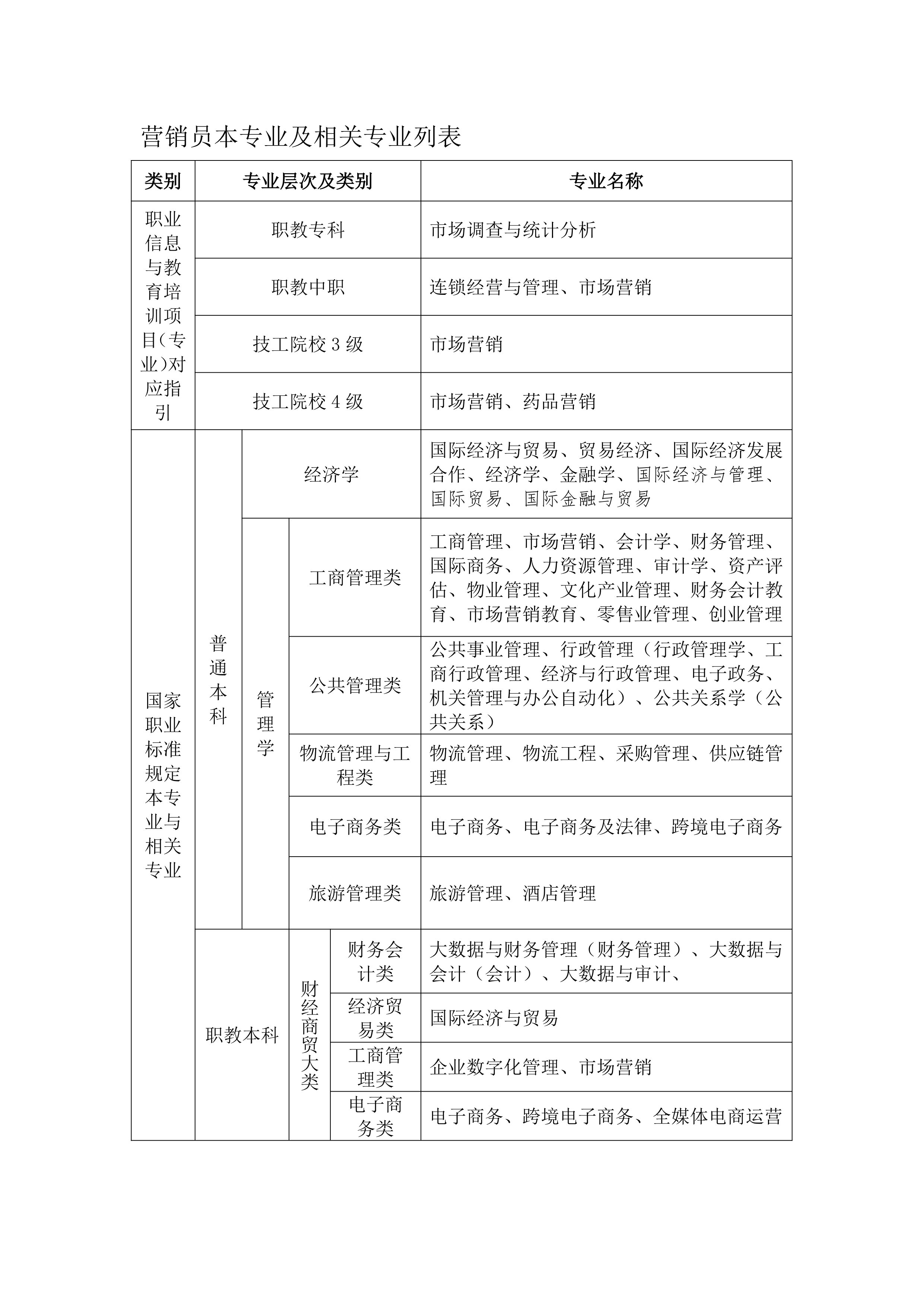 附件5-申报《营销员》职业技能等级认定的本专业及相关专业列表