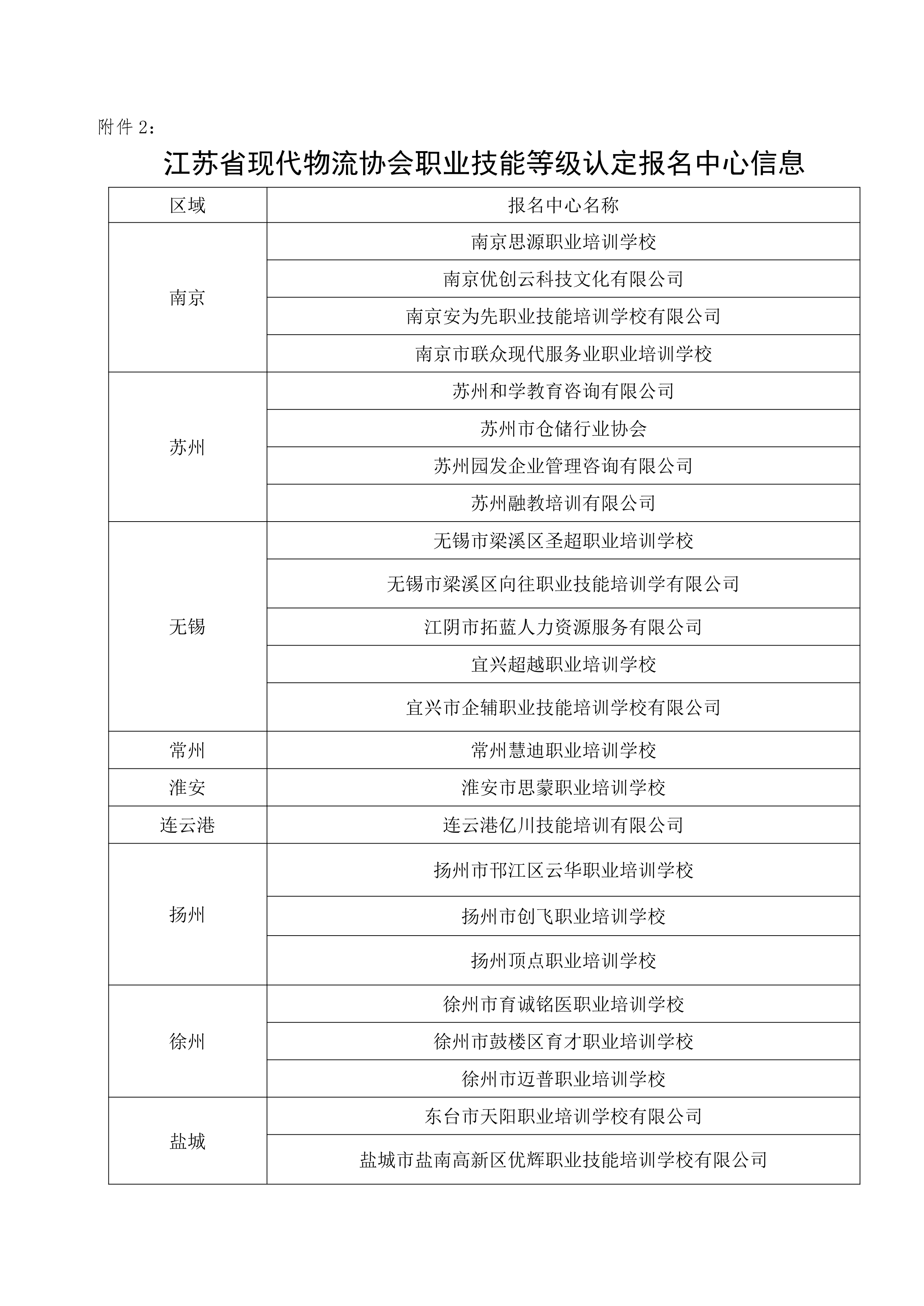 附件2-江苏省现代物流协会职业技能等级认定报名中心信息