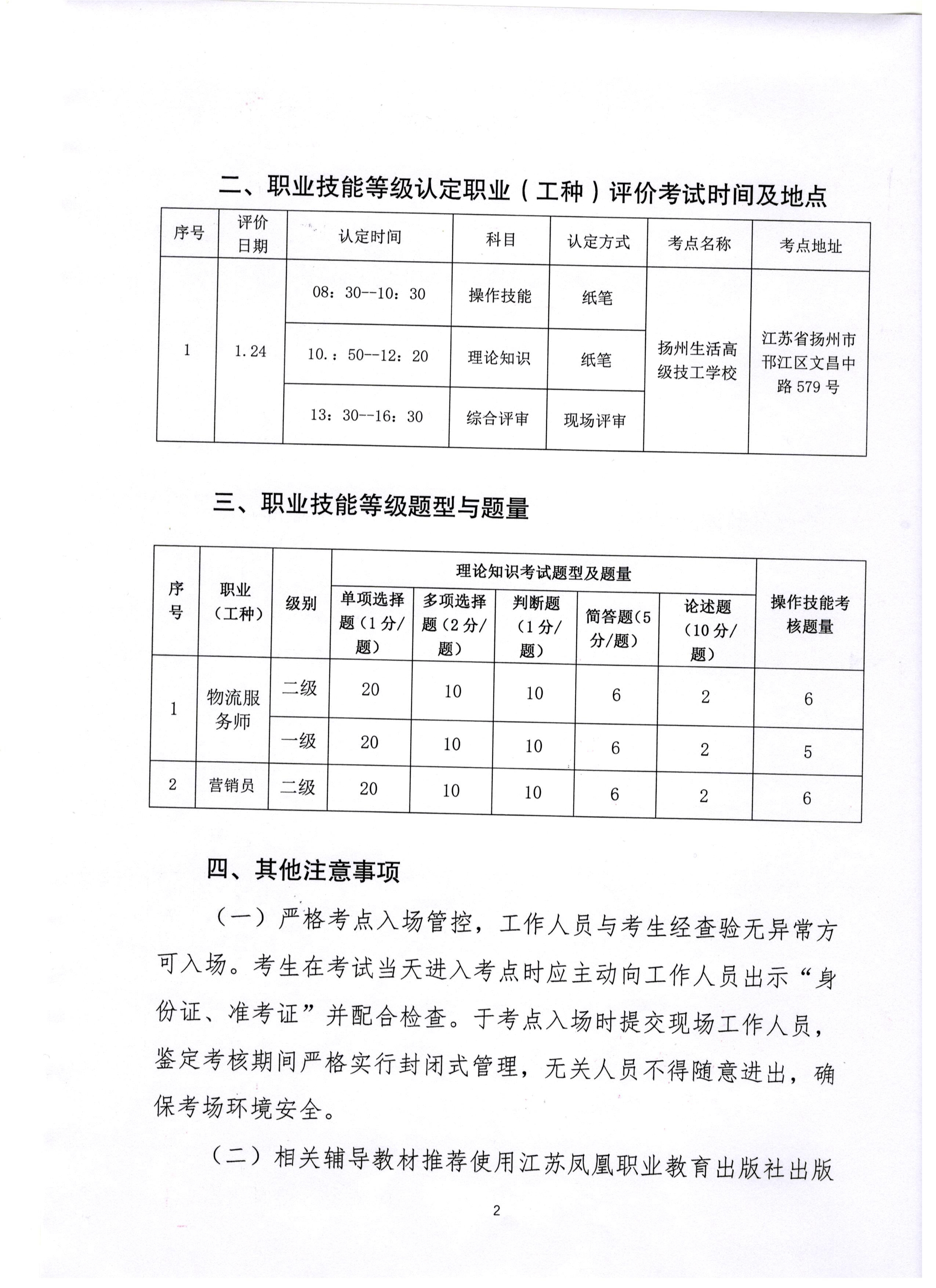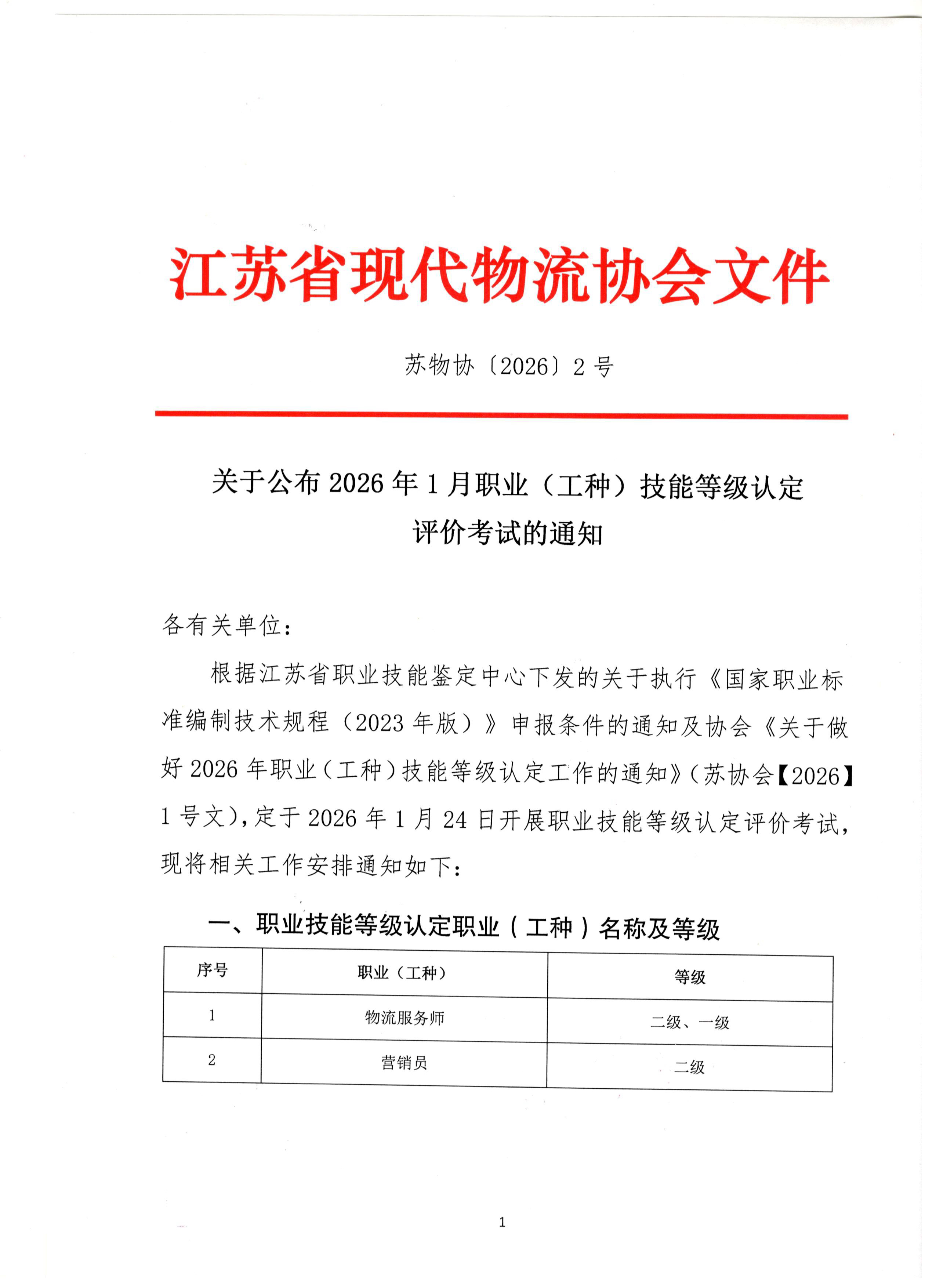 关于公布2026年1月职业(工种)技能等级认定评价考试的通知