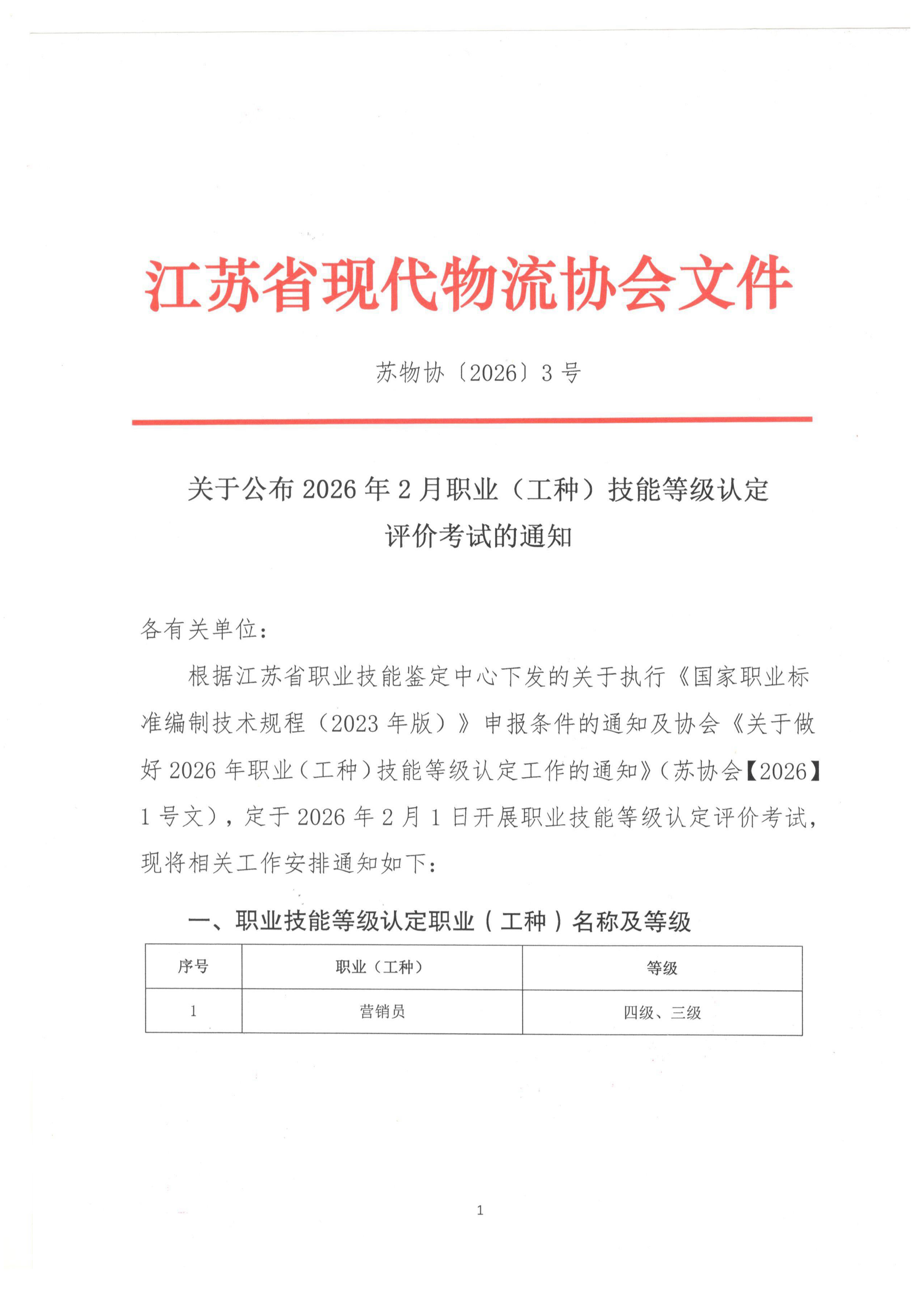 关于公布2026年2月职业(工种)技能等级认定评价考试的通知