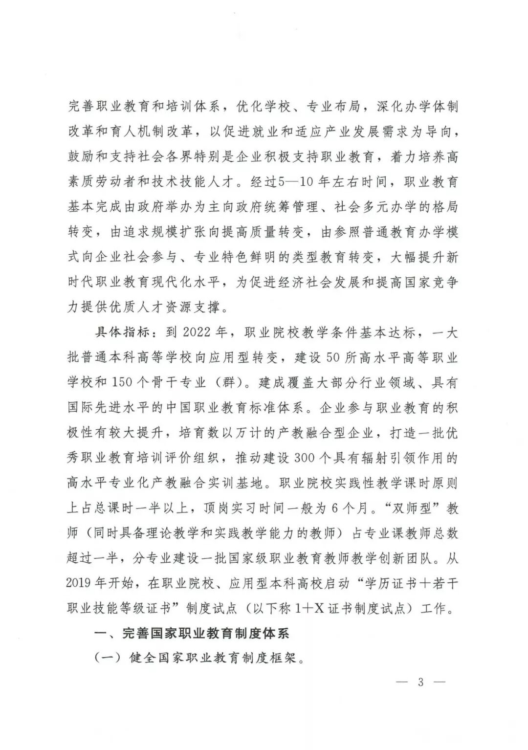1月24日,国务院印发《国家职业教育改革实施方案》(简称“职教二十条”),这是新时代职业教育改革的指导性文件,文件明确了“职业教育与普通教育是两种不同教育类型,具有同等重要地位”,这在职业教育发展过程中是具有划时代的意义。文件明确要启动两项行动,一是启动实施中国特色高水平高职院校和专业建设计划(简称“特高计划”),二是启动1+X证书制度试点工作,这两项将涉及到职业教育下一步的改革。