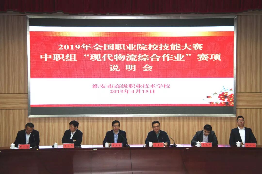 2019年4月15日,由中国物流与采购联合会、全国物流职业教育教学指导委员会主办,江苏省淮安高等职业技术学校承办,北京络捷斯特科技发展股份有限公司技术支持的2019年全国职业院校技能大赛中职组物流赛项说明会在江苏淮安顺利召开。赛项执委会主任、中国物流与采购联合会教育培训部主任、物流行指委秘书长郭肇明,赛项执委会副主任、江苏省淮安高等职业技术学校校长黄少基等领导出席会议。赛项执委会、专家组成员代表、赛项承办单位、技术支持单位、各省市参加全国决赛的参赛队代表共150余人参加了本次说明会。会议由赛项执委会秘书长、江苏省淮安高等职业技术学校副校长林以猛主持。