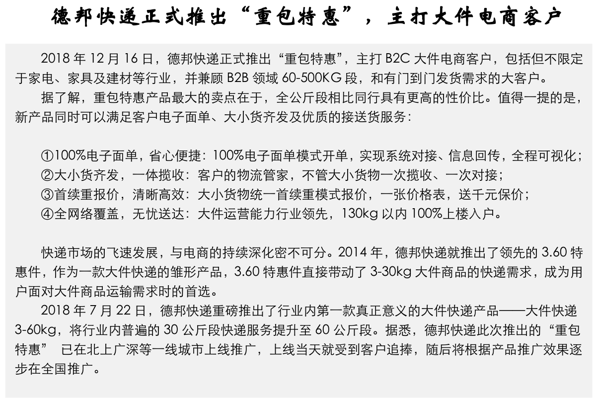德邦快递正式推出“重包特惠”主打大件电商客户