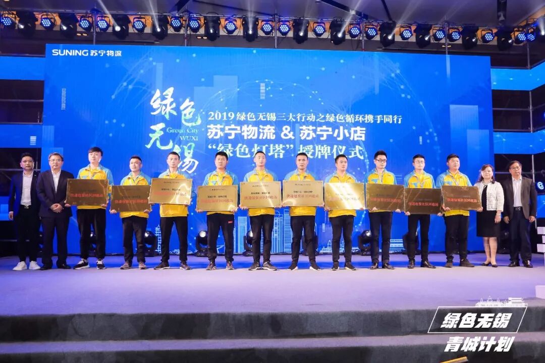 ▲苏宁物流&苏宁小店“绿色灯塔”快递包装回收站授牌