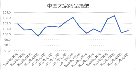 由中国物流与采购联合会调查、发布的2023年5月份中国大宗商品指数(CBMI)为100.7%,较上月回升0.4个百分点。各分项指数中,供应指数、库存指数止跌回升,销售指数则继续回落。从本月指数的变化情况来看,本月指数止跌回升,主要是受到代表供应端的供应指数和库存指数止跌回升拉动所致,而销售指数持续回落,特别是供应指数连续4个月高于销售指数,显示需求收缩连续快于供应,供需矛盾有所显现,当前国内大宗商品市场供大于求的压力继续显现,商品库存仍在积压。展望6月份,国内大宗商品市场将处于内外交困的状况中,整体运行压力加大,特别是当前国内经济尚处于弱复苏状态,民营经济仍然偏弱,经济回升的内生动力依然不足,我国外贸出口也可能面临较大不确定性。从国外环境来看,当前全球经济复苏仍面临着制造业景气度下滑的制约,也增加了全球经济复苏的不确定性。另外,进入6月份,随着北方高温和南方雨季的到来,天气对于项目施工的影响逐步增大,将对需求产生明显的影响;制造业订单类指数继续小幅回落,反映市场需求收缩的问题仍然突出,市场需求或面临较大的下滑压力。若商品产量仍高位释放,市场供需矛盾将仍然偏大。综合来看,6月份国内大宗商品市场将会呈现淡季需求不足、供应高位下滑、国内政策提振有限、外部风险依然较高的局面,商品价格整体仍将处于弱势盘整的阶段,部分商品的价格存在一定的下行空间。