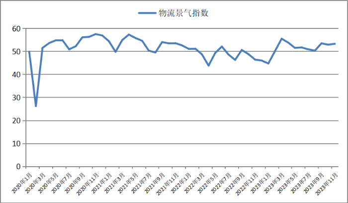 中国物流与采购联合会发布的2023年11月份中国物流业景气指数为53.3%,环比回升0.4个百分点。主要指标中,业务总量指数、新订单指数、资金周转率指数、固定资产投资完成额指数均呈现小幅回升,就业岗位需求保持增长,业务活动预期继续处于较高景气区间,企业微观盈利水平有所改善。