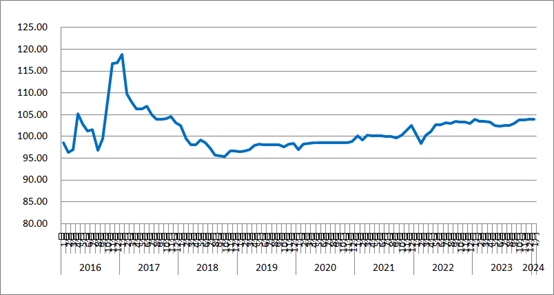 2024年1月份,由中国物流与采购联合会和林安物流集团联合调查的中国公路物流运价指数为103.9点,比上月回落0.09%,比去年同期回落0.1%。从周指数看,第一、二、四周运价指数环比回落,第三周运价指数环比回升。