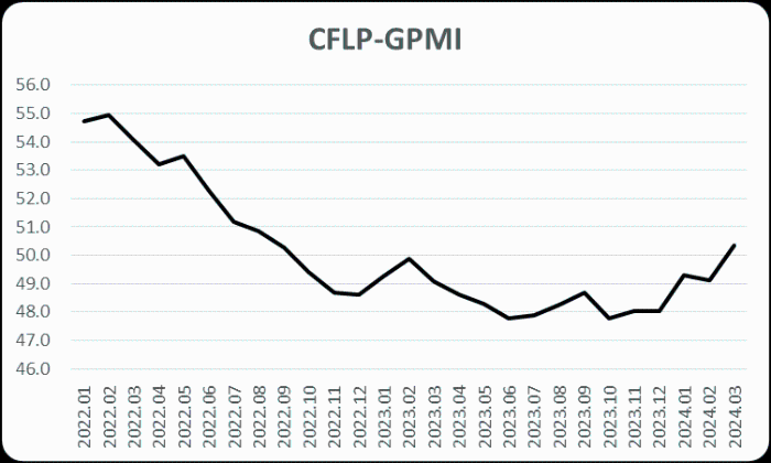 据中国物流与采购联合会发布,2024年3月份全球制造业PMI为50.3%,较上月上升1.2个百分点,结束了连续17个月50%以下的运行走势,重回50%以上的扩张区间。一季度,全球制造业PMI均值为49.6%,高于去年四季度47.9%的平均水平。