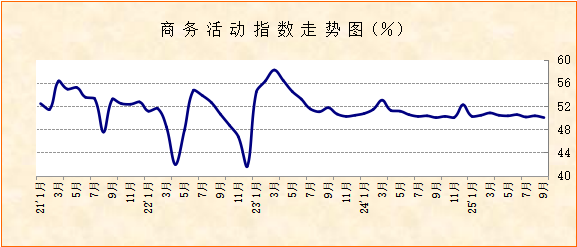 国家统计局服务业调查中心、中国物流与采购联合会发布的2025年9月份中国非制造业商务活动指数为50%,较上月下降0.3个百分点,与去年同期持平,显示非制造业经营活动增速较上月稍有放缓,但整体仍保持平稳。金融和新动能相关活动持续向好,居民线上购物较为活跃,较好支撑非制造业平稳运行。建筑业延续短期增长乏力特征,暑期消费相关活动出现淡季回调。