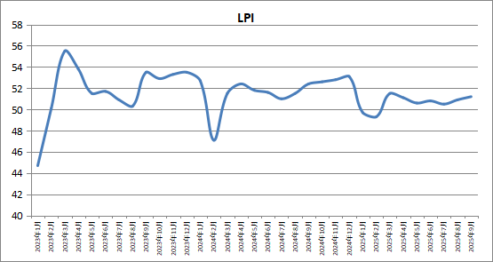 中国物流与采购联合会发布的2025年9月份中国物流业景气指数为51.2%,环比回升0.3个百分点。9月份供应链上下游产供销有效衔接,物流需求增长平稳,服务价格总体稳中有升,企业经营内生动力较好。连续3个月数据来看,物流需求侧相关指标持续保持扩张区间,物流景气指数累计回升0.4个百分点,业务总量指数和新订单指数累计分别回升0.4和0.9个百分点,企业经营活力趋稳,物流服务价格指数、从业人员指数、主营业务利润指数连续回升。
