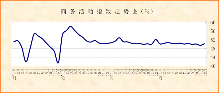 国家统计局服务业调查中心、中国物流与采购联合会发布的2025年12月份中国非制造业商务活动指数为50.2%,较上月上升0.7个百分点;新订单指数虽仍在50%以下,但较上月上升1.6个百分点,升至47.3%,创出今年以来新高。数据变化显示,非制造业经营活动增速较上月有所加快,重回扩张区间,需求侧虽仍在收缩区间,但也出现向好转变的迹象。在供需向好的带动下,企业市场预期持续升温,业务活动预期指数为56.5%,较上月上升0.3个百分点,连续3个月环比上升,连续3个月稳定在56%以上。细分指数变化显示,投资相关活动加速启动,金融支持实体经济力度持续增强,新动能发展态势持续活跃。