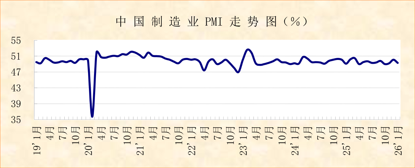 国家统计局服务业调查中心、中国物流与采购联合会发布的2026年1月份中国制造业采购经理指数(PMI)为49.3%,较上月下降0.8个百分点,显示制造业运行有所波动。从分项指数以及不同行业的指数变化来看,1月我国制造业市场需求有所收紧,但企业生产保持扩张态势,原材料和产成品价格联动上升,产业结构继续优化,制造业后市回稳运行具备基础。