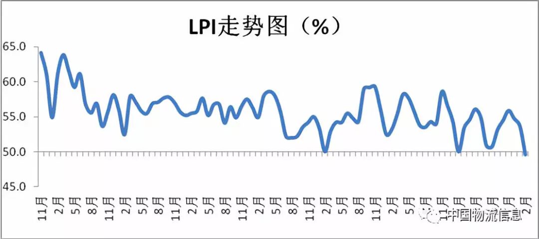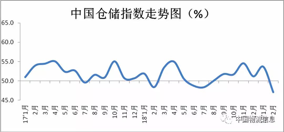 中国物流与采购联合会发布的2019年2月份中国物流业景气指数为49.6%,较上月回落4.1个百分点;中国仓储指数为47.1%,较上月回落6.6个百分点。