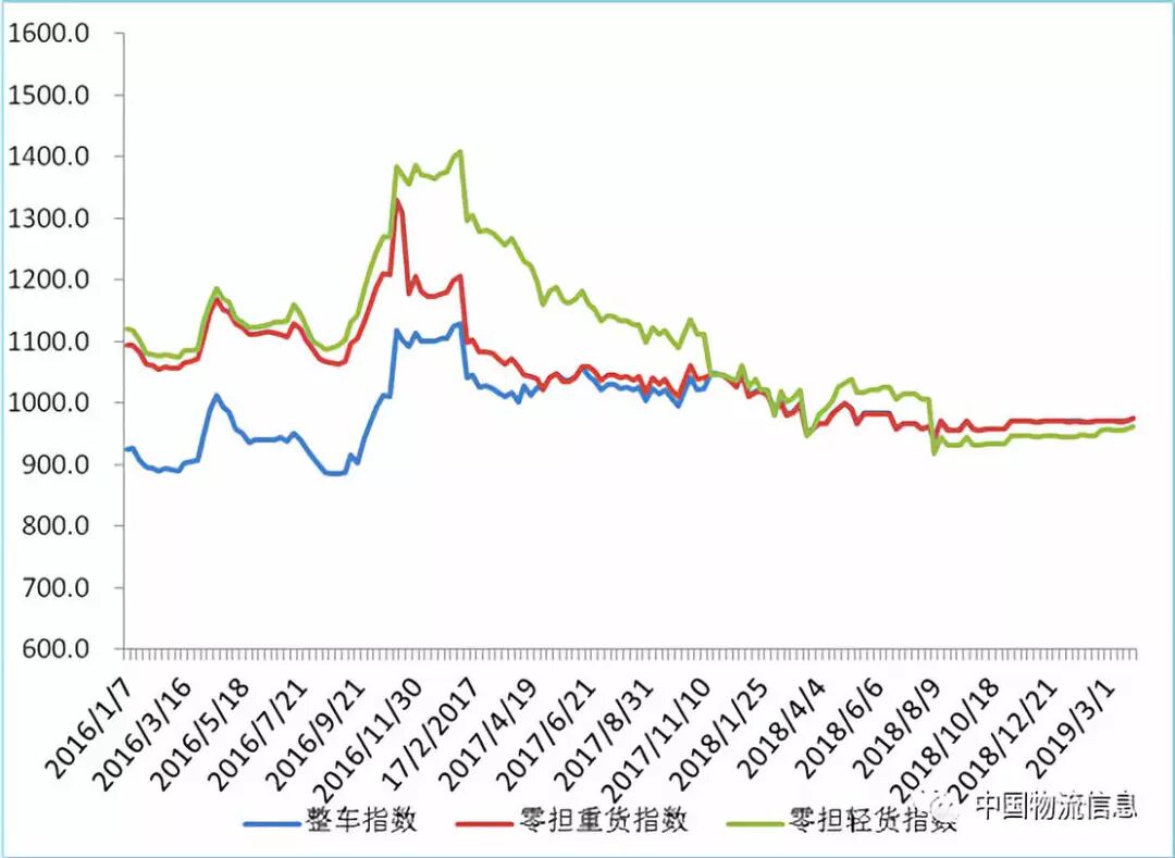 本周(2019年3月25日-3月29日),由中国物流与采购联合会和林安物流集团联合调查的中国公路物流运价指数972.90点,环比回升0.40%。